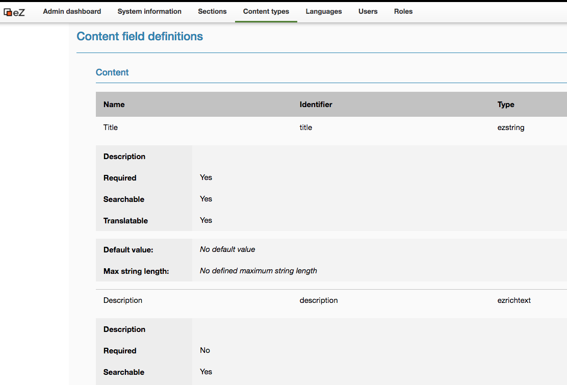 - The Admin panel now provides a way to get a clean digest view of content types configured in the system, with the ability to clearly get access to properties and field definitions.